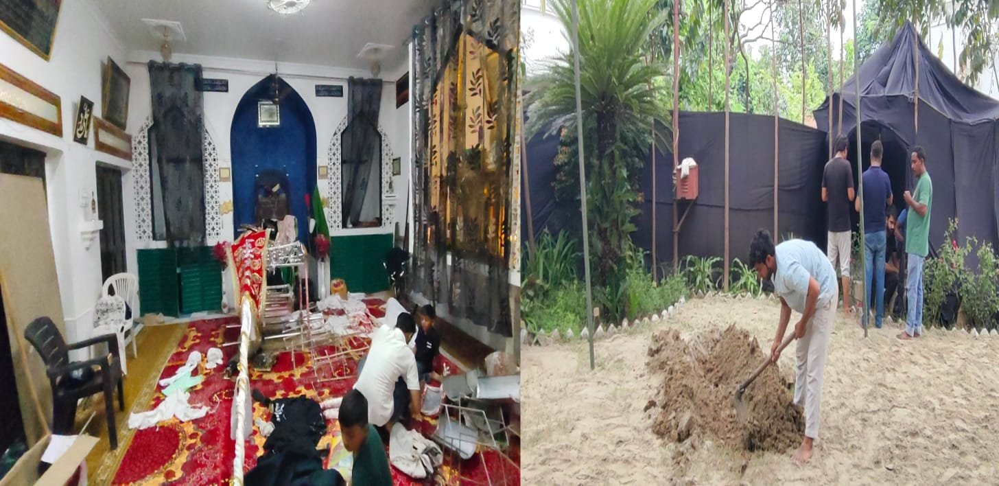 भगवान शिव की चित्र के सर पर चप्पल पहनकर बैठे संचालन कमेटी के लोग