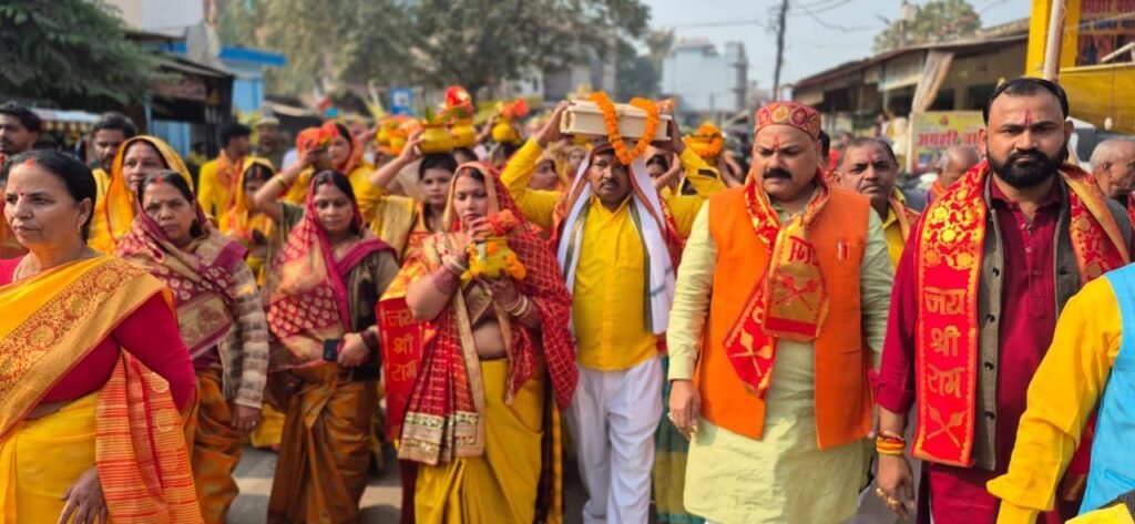 भारतीय उद्योग व्यापार मंडल दोस्तपुर के बैनर तले भारतीय उद्योग व्यापार मंडल के प्रदेश महामंत्री रवीन्द्र त्रिपाठी की प्रेरणा से भारतीय उद्योग व्यापार मंडल के कोषाध्यक्ष राकेश अग्रहरी के प्रबंधन में 15 दिसंबर से 21 दिसंबर तक श्री राम कथा का आयोजन हो रहा है 22 दिसंबर को भंडारा प्रसाद वितरण होगा आज कथा प्रारंभ होने के पूर्व कलश यात्रा निकल गई जिसमें सैकड़ो की संख्या में मात्र शक्तियों तथा आम जनमानस में भाग लिया कलश यात्रा चौक घंटा घर से प्रारंभ होकर गाजे के साथ कथा स्थल अनुपम नगर पर पहुंची रथ पर सवार कथा व्यास अंतर्राष्ट्रीय कथावाचक दिलीप कृष्ण भारद्वाज पर बाजार में जगह-जगह पुष्प वर्षा हुई श्रद्धालुओं का जन सैलाब आज की कलश यात्रा में उमड़ पाड़ा देखते देखते संख्या सैकड़ो से हजारों में तब्दील हो गई कलश यात्रा में मुख्य रूप से भारतीय उद्योग व्यापार की जिलाध्यक्ष रमेश अग्रहरि दोस्तपुर नगर अध्यक्ष अजय सोनी भाजपा मंडल अध्यक्ष विजय लक्ष्मी शुक्ला रमा शंकर पाठक शशि बरनवाल अश्विनी बरनवाल फूल चन्द्र अग्रहरि रजनीश सिंह प्रवीण त्रिपाठी कमलेश कुमार मुकेश अग्रहरि पुनीत मोदनवाल रानी देवी सहित सैकड़ों की संख्या में राम भक्त मौजूद रहे।