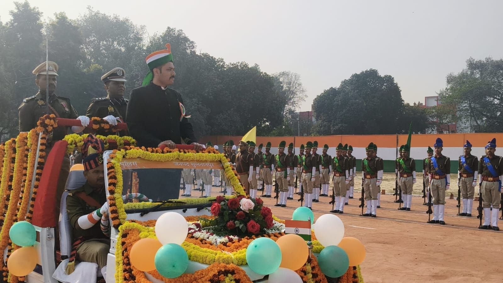 पुलिस लाइन में पुलिस परेड तथा स्कूली बच्चों का सांस्कृतिक कार्यक्रम रहा मुख्य आकर्षण। सुलतानपुर 27 जनवरी/जिले में 77वां गणतंन्त्र दिवस राष्ट्रीय पर्व गत वर्ष की भांति गरिमापूर्ण ढ़ंग से, हर्षोंल्लास एवं सादगी के साथ मनाया गया, जिसमें ध्वजारोहण, राष्ट्रगान, संविधान में उल्लिखित संकल्प, महापुरूषों/महान विभूतियों की प्रतिमाओं पर माल्यार्पण, स्कूली बच्चों की प्रभात फेरी, सांस्कृतिक कार्यक्रम, खेल कूद, वाद विवाद, पुलिस लाइन में परेड सहित अन्य प्रतियोगिताओं का आयोजन किया गया। जिलाधिकारी कुमार हर्ष द्वारा पुलिस लाइन में ध्वजारोहण, सलामी के पश्चात पुलिस परेड निरीक्षण किया गया।