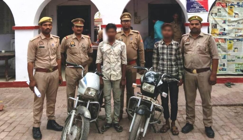 दोनों चोरों को मोटरसाइकिल के साथ पुलिस ने लिया हिरासत में